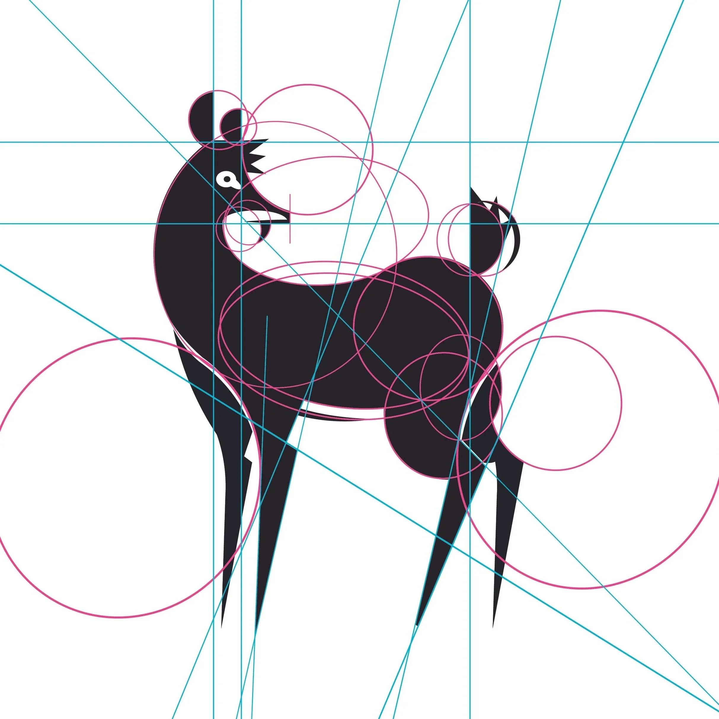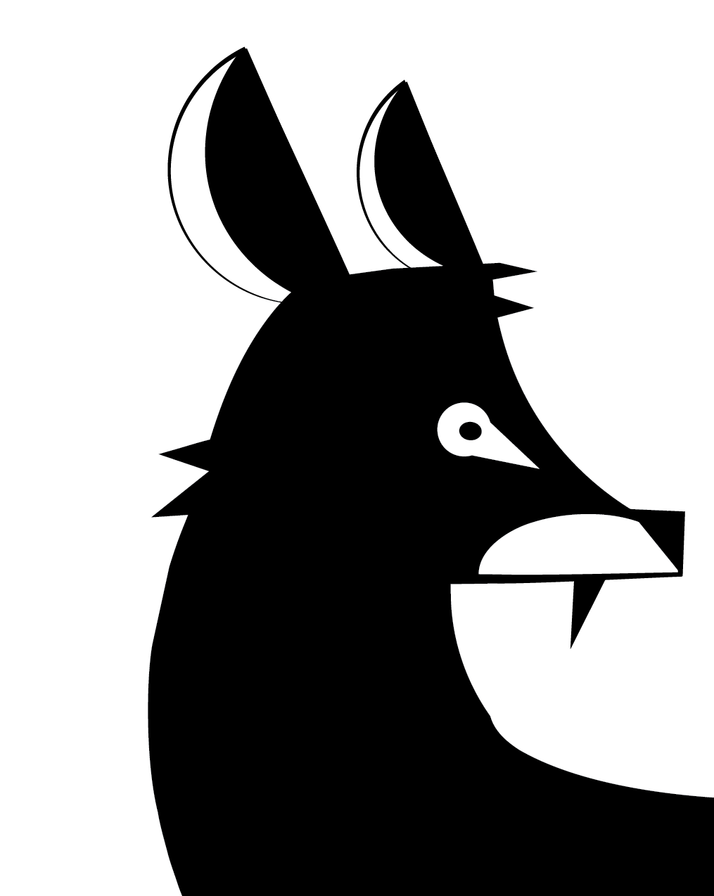 Based on my sketches, I moved to Adobe Illustrator to refine my ideas. I focused initially on the head, since its tufted hair and fang-like tusks are the most distinctive features of the species. I experimented with different shapes and line weights to find the best way to represent these key features accurately.
