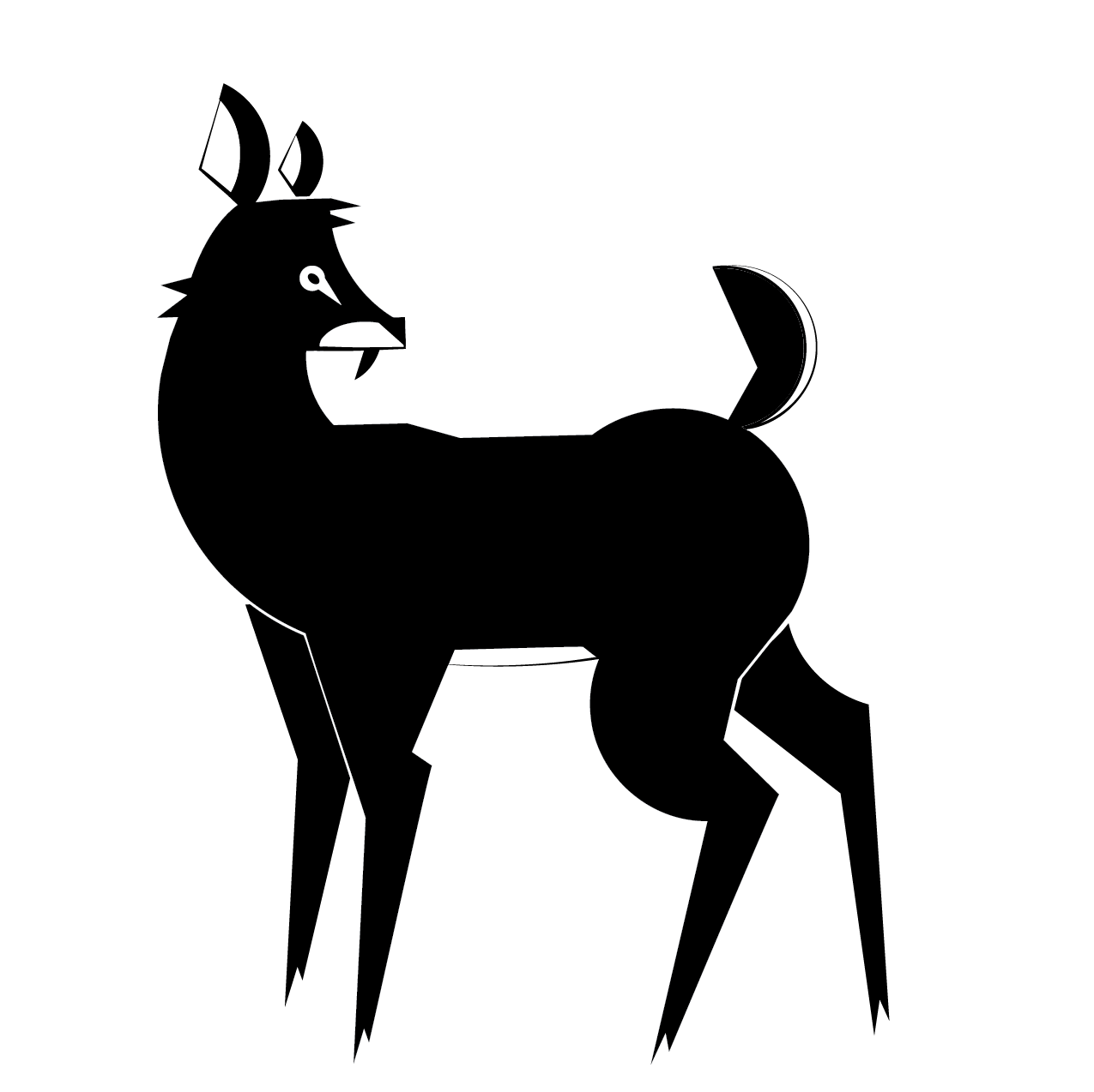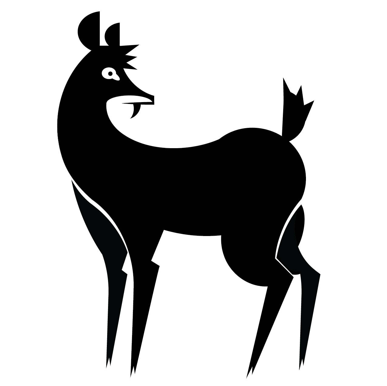 The Tufted deer is a small species of deer native to Southeast Asia and is one of many subspecies of Asian deer known as vampire deer due to their pronounced canines. This species is named specifically for its darkly colored hair on the top of its head. When crafting my mark it was essential to communicate both its namesake and its equally iconic tusks. I also aimed to express the deer's cautious and timid nature, emphasizing alertness and awareness of its surroundings.