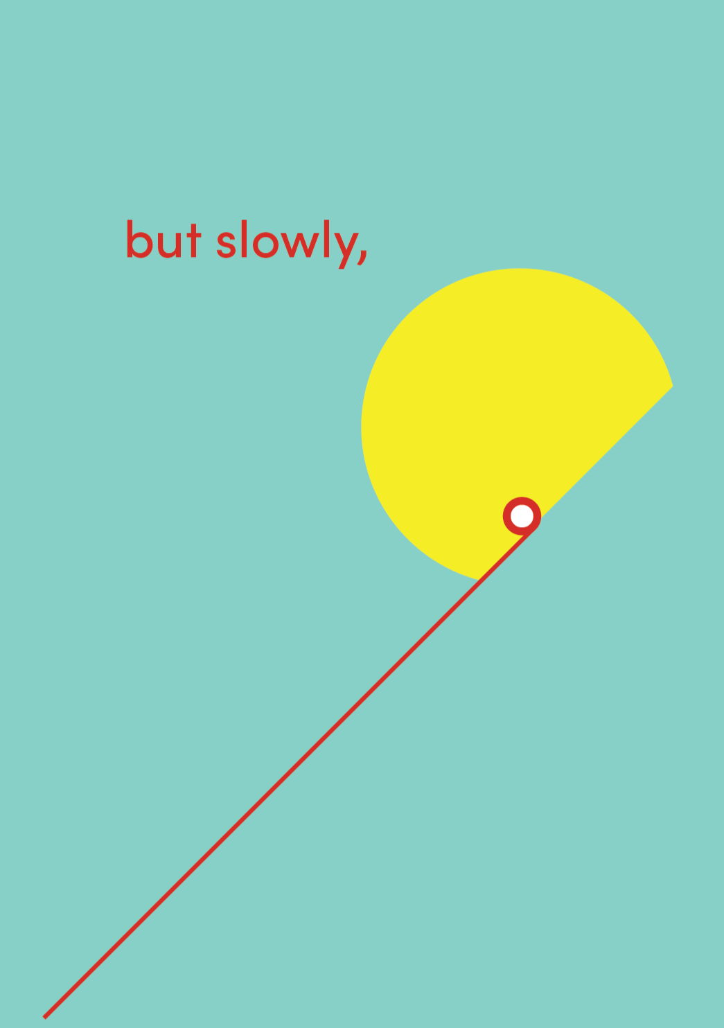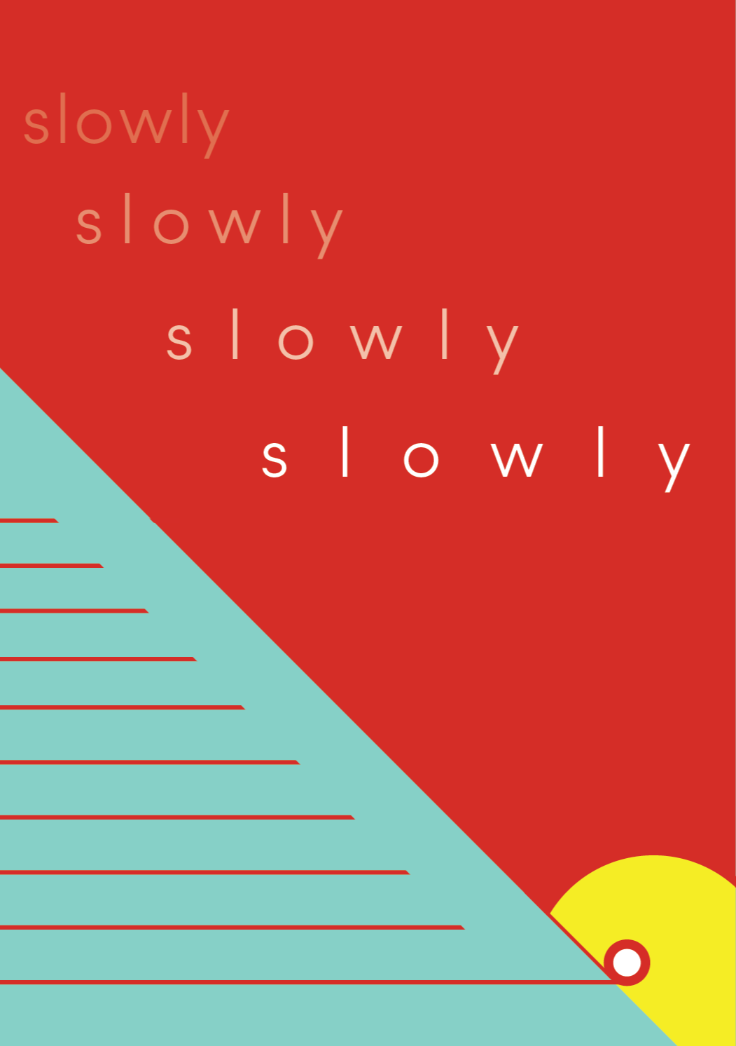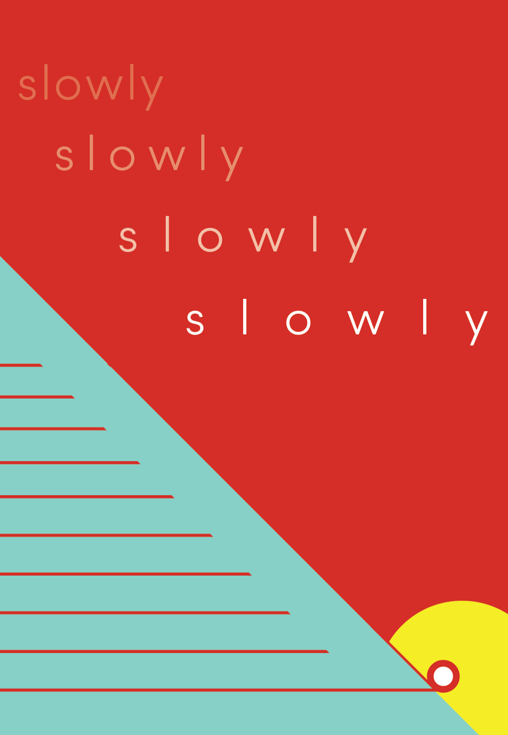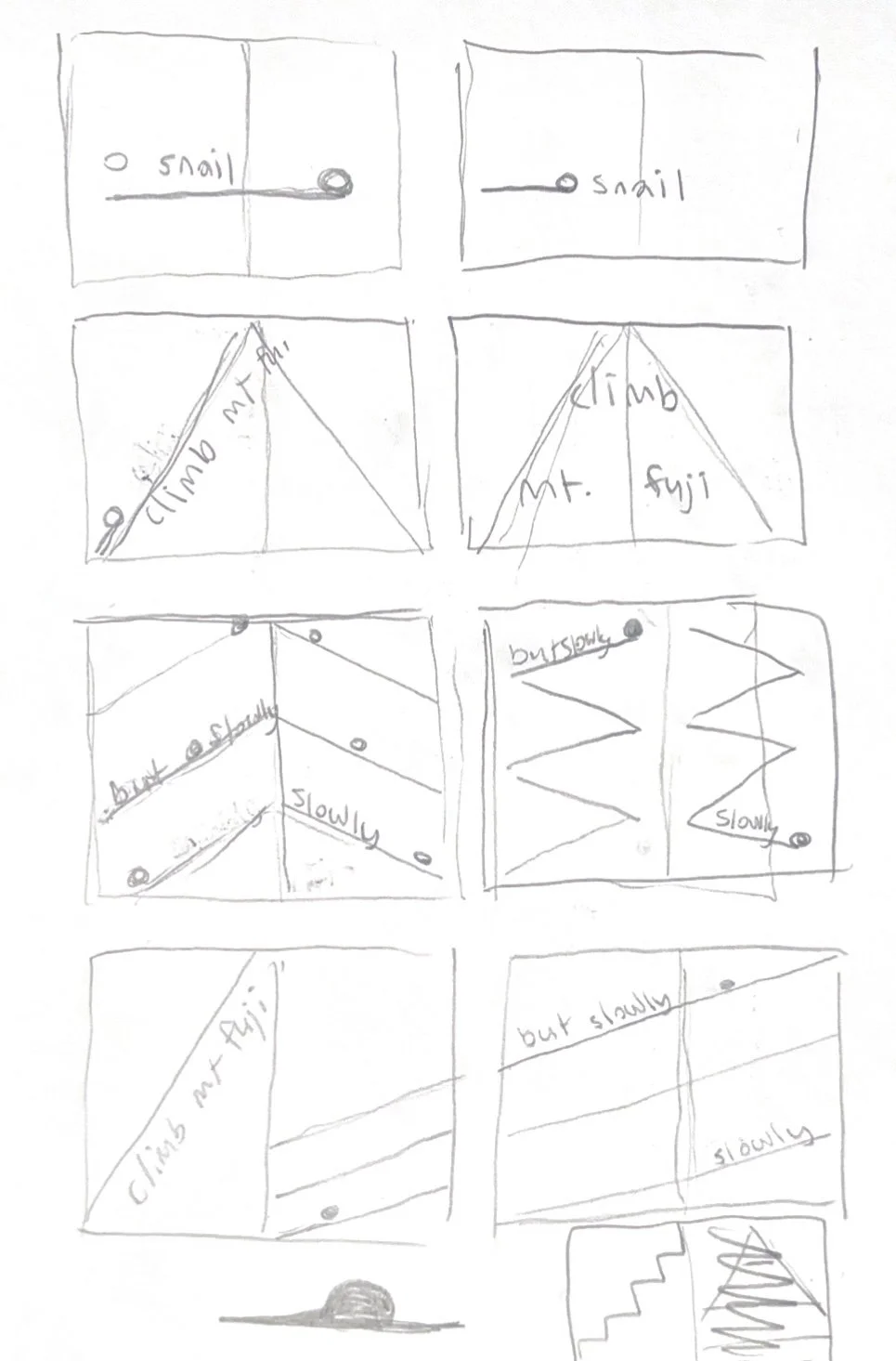 After applying color, I began adding text. I struggled with the text on the final page for a bit. I wanted the word “slowly” to feel slow and heavy, however not in a negative way. I experimented with ways to express the word in a way that still felt slow, but also carried a sense of accomplishment.